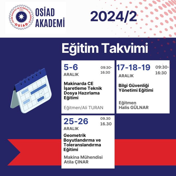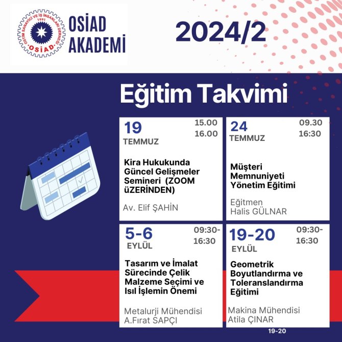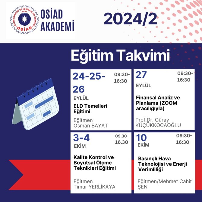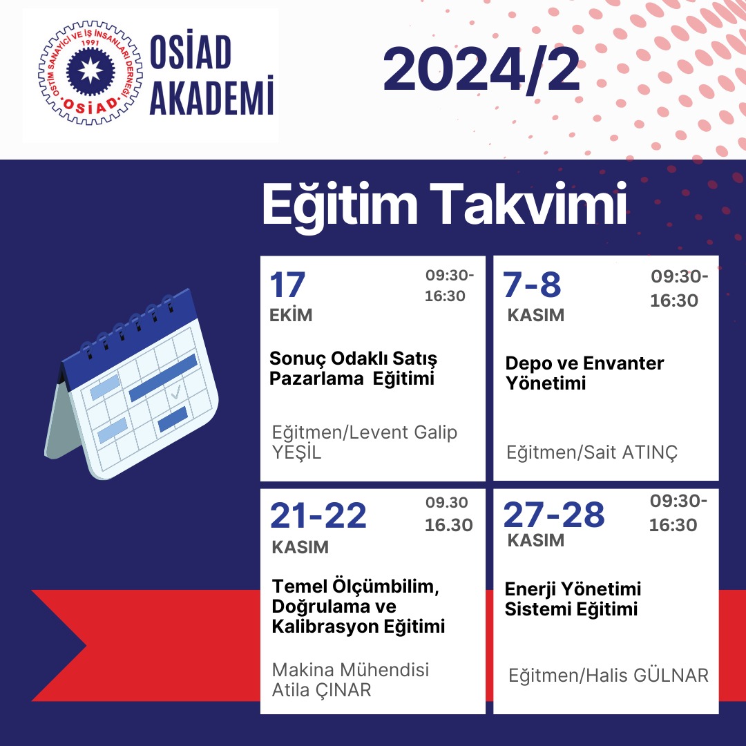 OSİAD Akademi 2024 yılı ikinci 6 aylık eğitim ve seminer takvimi hazırlandı. Eğitimlerimiz kontenjanla sınırlı olup, erken kayıt ve bilgi için bizlere ulaşabilirsiniz.📞0(312) 354 47 47📧osiadakademi@gmail.com