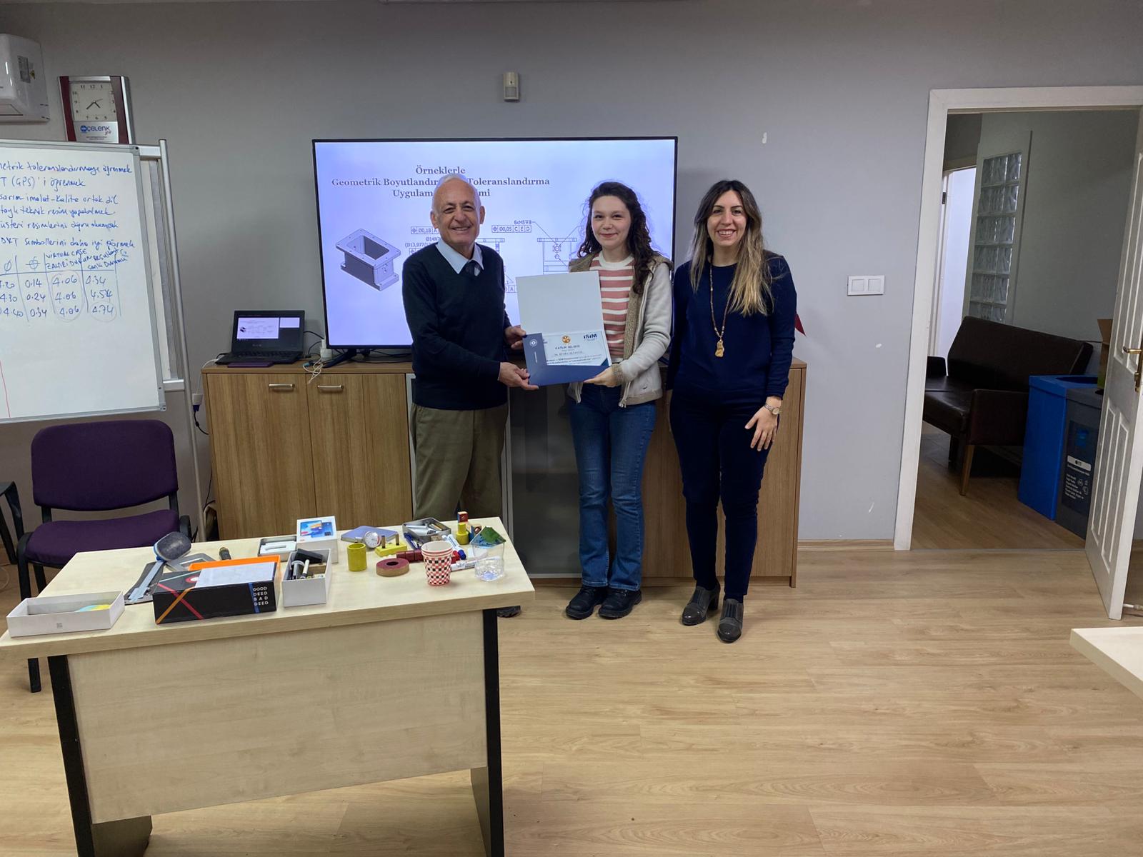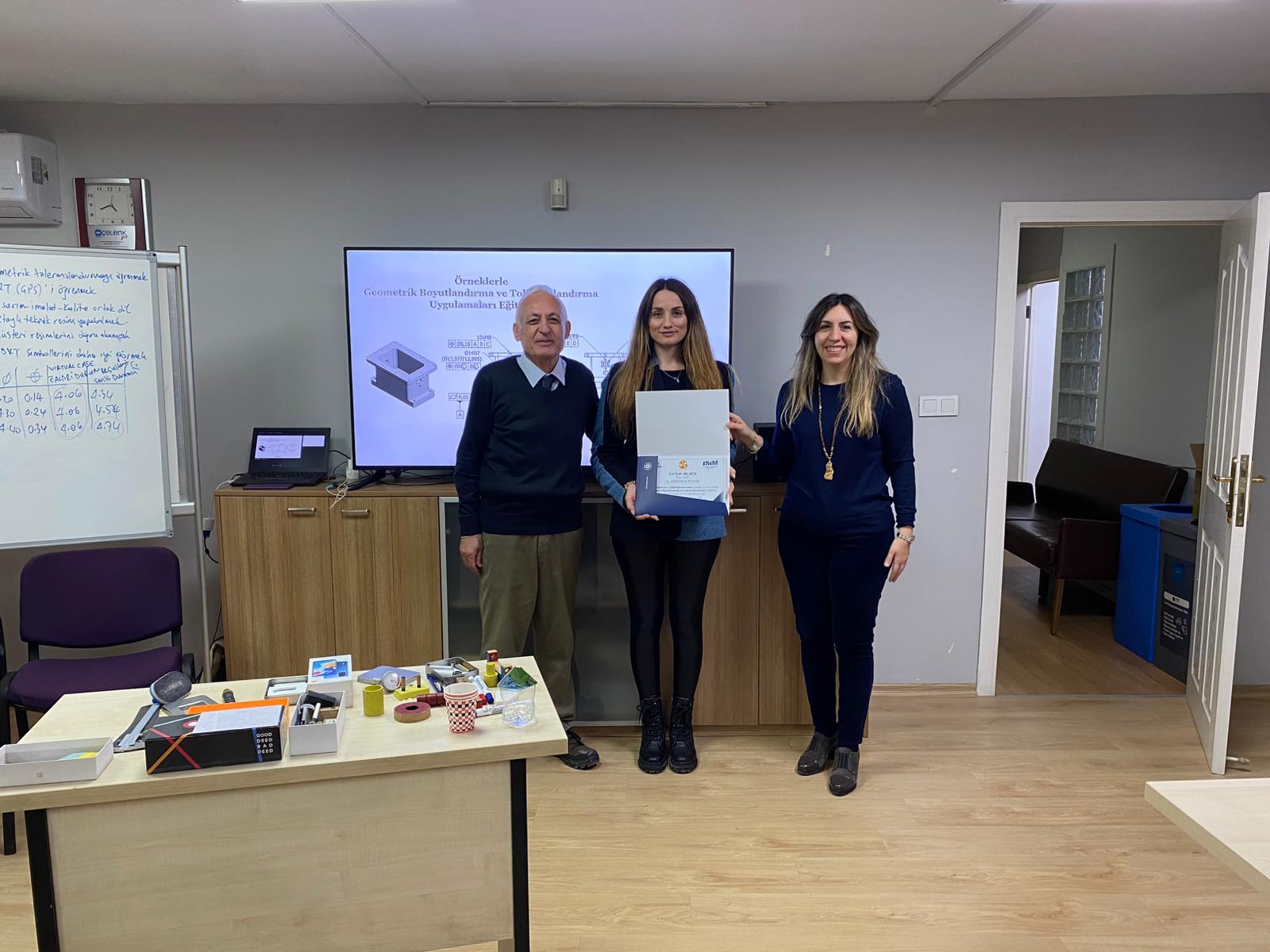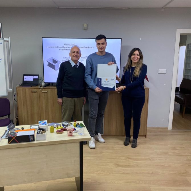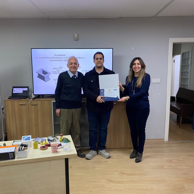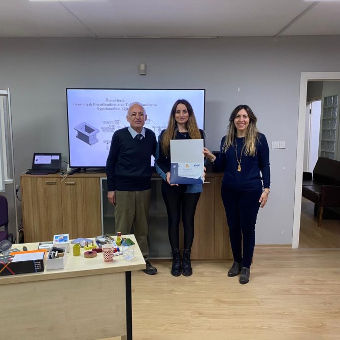 OSİAD Akademi, Anadolu OSB ve İŞİM Kümelenmesi iş birliği ile düzenlenen “Geometrik Boyutlandırma ve Toleranslandırma” eğitimi, eğitmenimiz Makine Mühendisi Atila Çınar öncülüğünde başarıyla tamamlandı. OSİAD Başkan Yardımcısı ve Akademi Başkanı Dr. Ayşe Beltan Saraçoğlu ve eğitmen Makine Mühendisi Atila Çınar eğitime katılan sektör temsilcilerine sertifikalarını takdim ettiler.