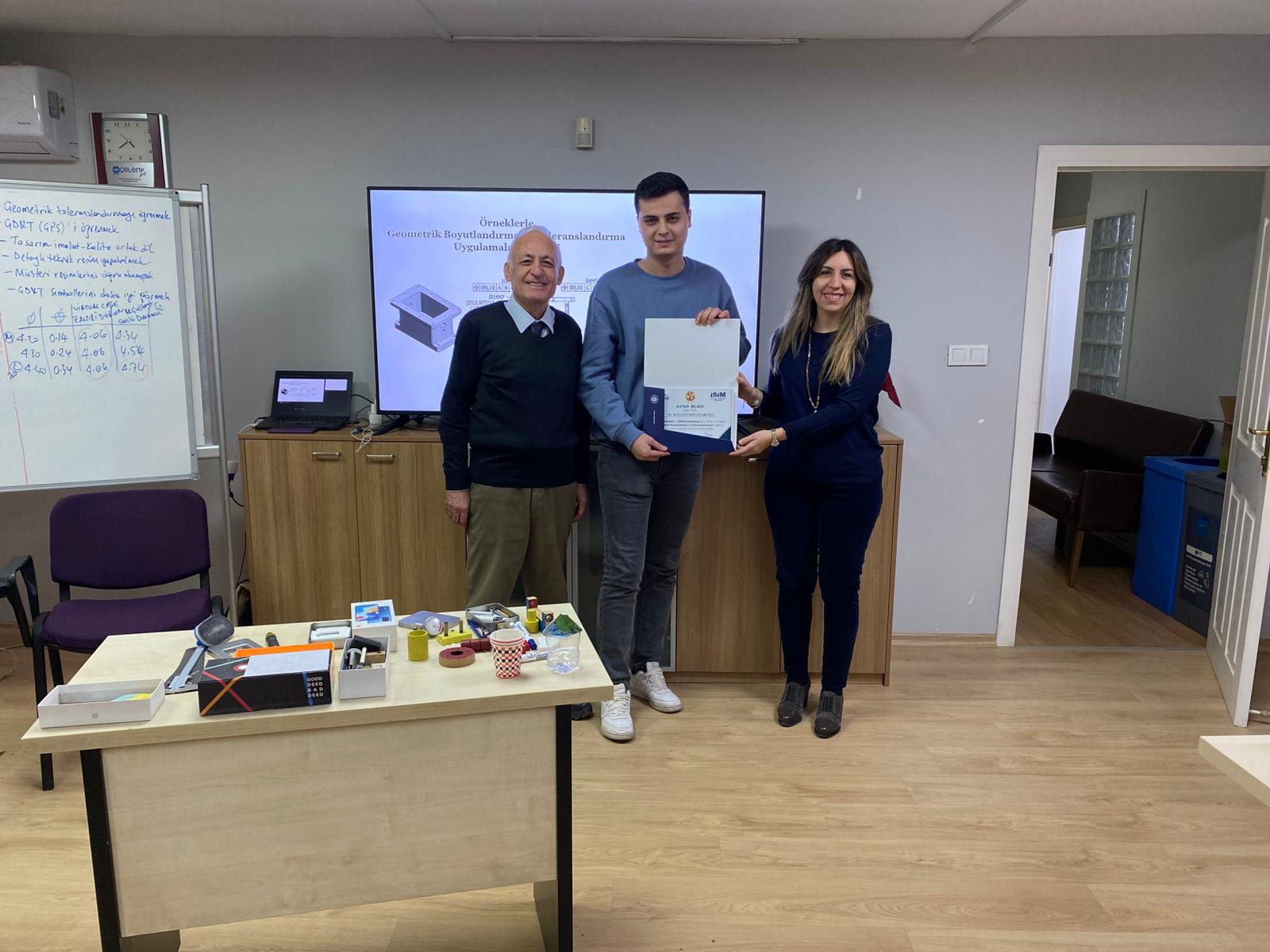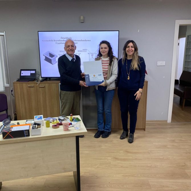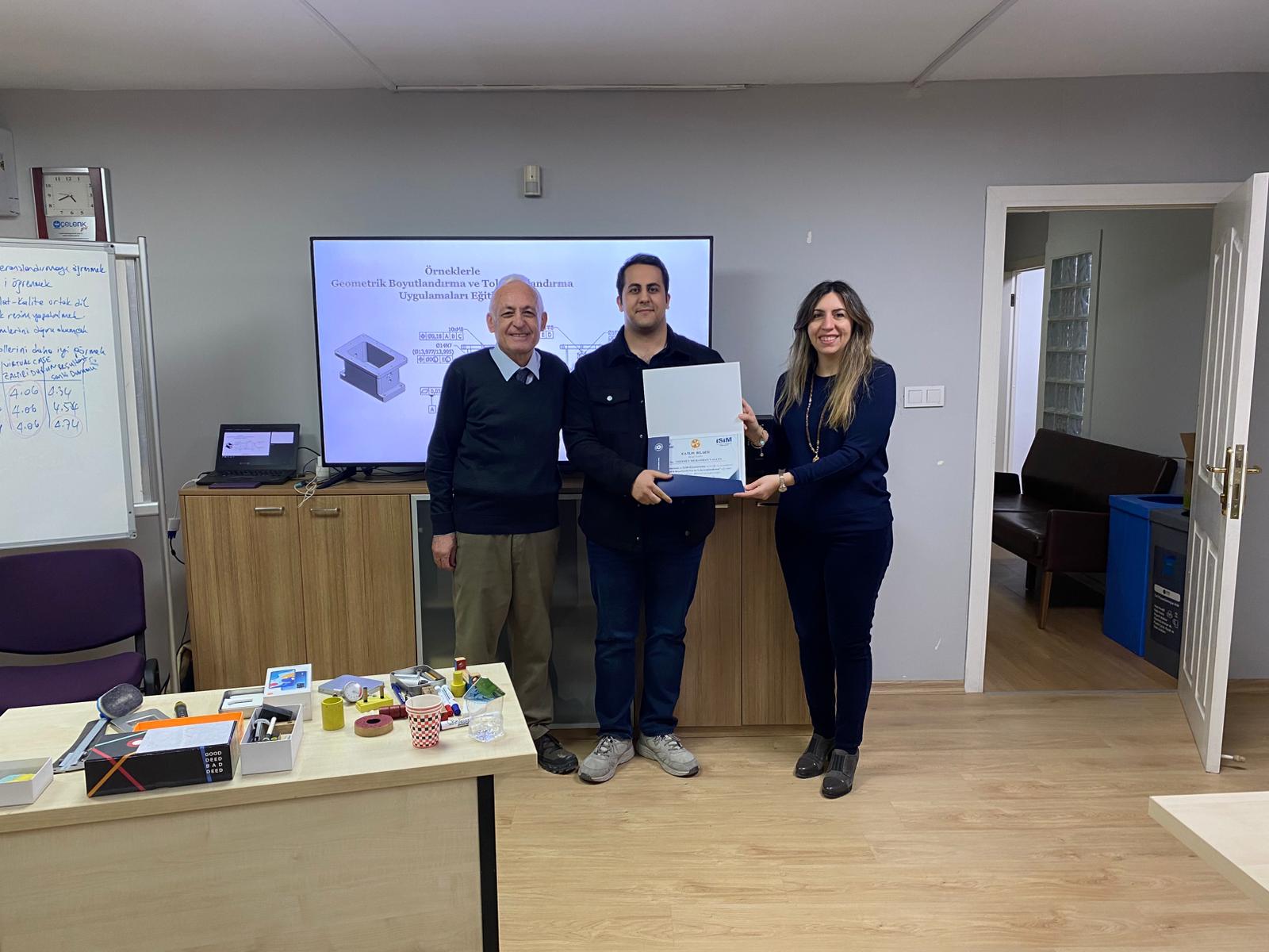 OSİAD Akademi, Anadolu OSB ve İŞİM Kümelenmesi iş birliği ile düzenlenen “Geometrik Boyutlandırma ve Toleranslandırma” eğitimi, eğitmenimiz Makine Mühendisi Atila Çınar öncülüğünde başarıyla tamamlandı. OSİAD Başkan Yardımcısı ve Akademi Başkanı Dr. Ayşe Beltan Saraçoğlu ve eğitmen Makine Mühendisi Atila Çınar eğitime katılan sektör temsilcilerine sertifikalarını takdim ettiler.