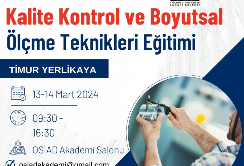 Makina Parçalarının Üretiminde, Kalite Kontrol ve Boyutsal Ölçme Teknikleri OSİAD Akademi‘nin düzenlemiş olduğu Kalite Kontrol ve Boyutsal Ölçme Teknikleri Eğitimi, Timur YERLİKAYA‘nın anlatımı ile Mitaş Kompozit A.Ş. nin eğitim salonunda başlamıştır.