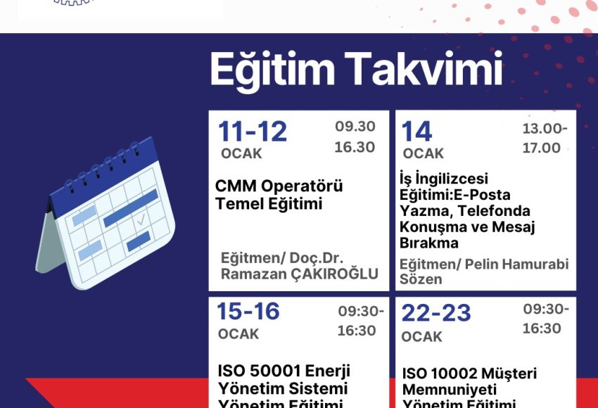 OSİAD Akademi, Gazi Üniversitesi, Anadolu OSB ve İŞİM Kümelenmesi iş birliği ile düzenlenen “CMM Operatörü Temel Eğitimi” 11-12 Ocak tarihlerinde 09.30-16.30 saatleri arasında (2 gün) eğitmen Doç. Dr. Ramazan Çakıroğlu tarafından Gazi Üniversitesi Teknik Bilimler Meslek Yüksek Okulunda gerçekleştirilecektir. Katılım sınırlıdır. Başvuru sırasına göre kayıt yapılacaktır. Kayıt ve bilgi için: […]