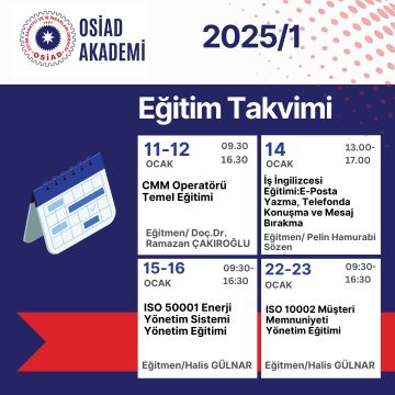 OSİAD AKADEMİ 2025/1. DÖNEM EĞİTİM TAKVİMİ YAYINLANDI.